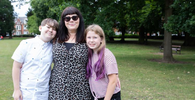 A mother with her son and daughter in a park
